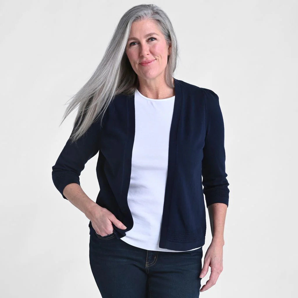 Elevate your outfit with our elegant Pointelle Detail ¾ Sleeve Shrug, crafted from sweater knit fabrication and featuring a delicate puff shoulder for a flattering, feminine touch. With its perfect waist-length fit, it effortlessly pairs with dresses and skirts, and comes in three versatile colorways to match every style.