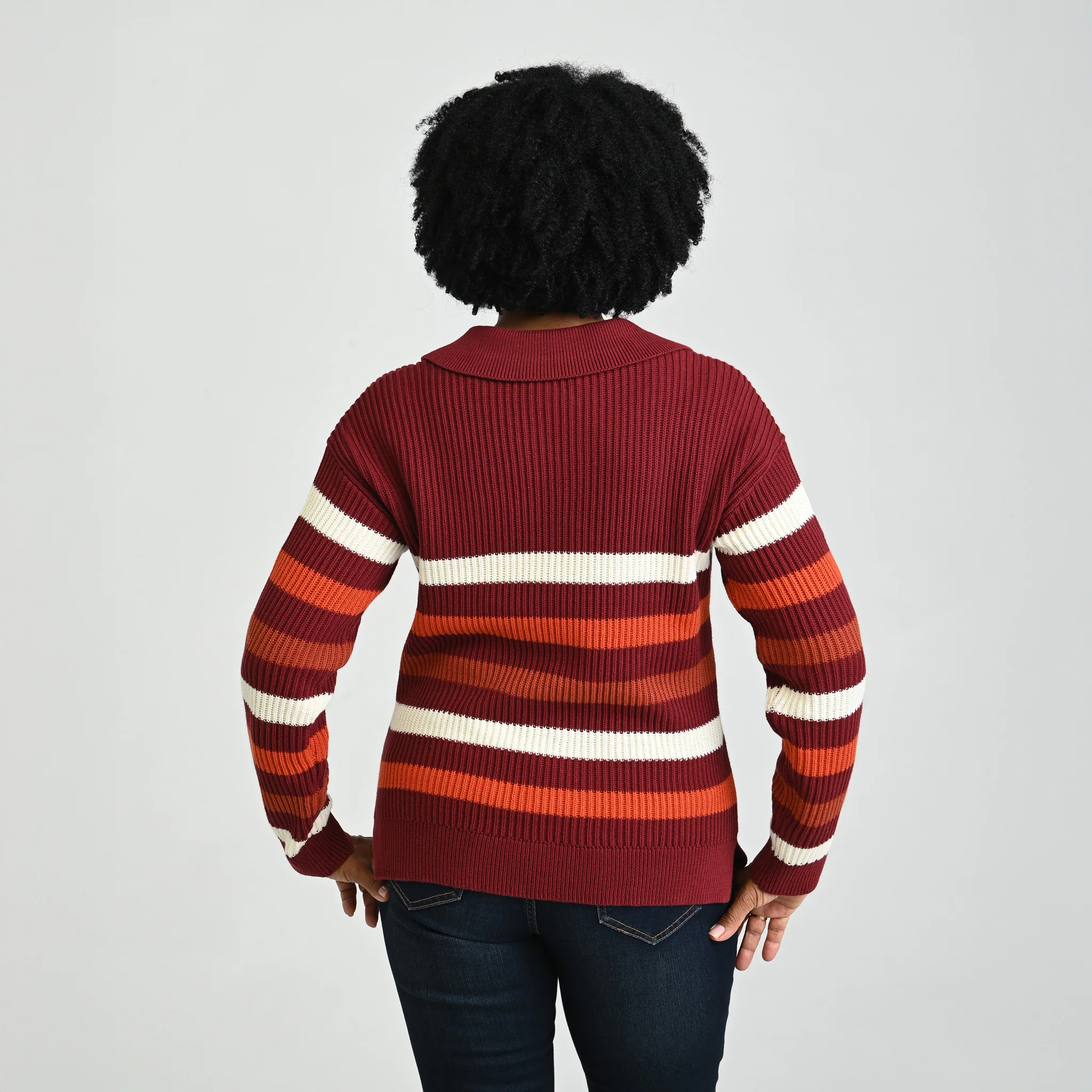 Made a bold yet effortless statement in our Textured Stitch Striped Sweater, featuring vibrant multi-color stripes and a flattering subtle V-neck with Johnny collar. Designed with side slits for easy movement, it's the perfect blend of comfort and standout style.