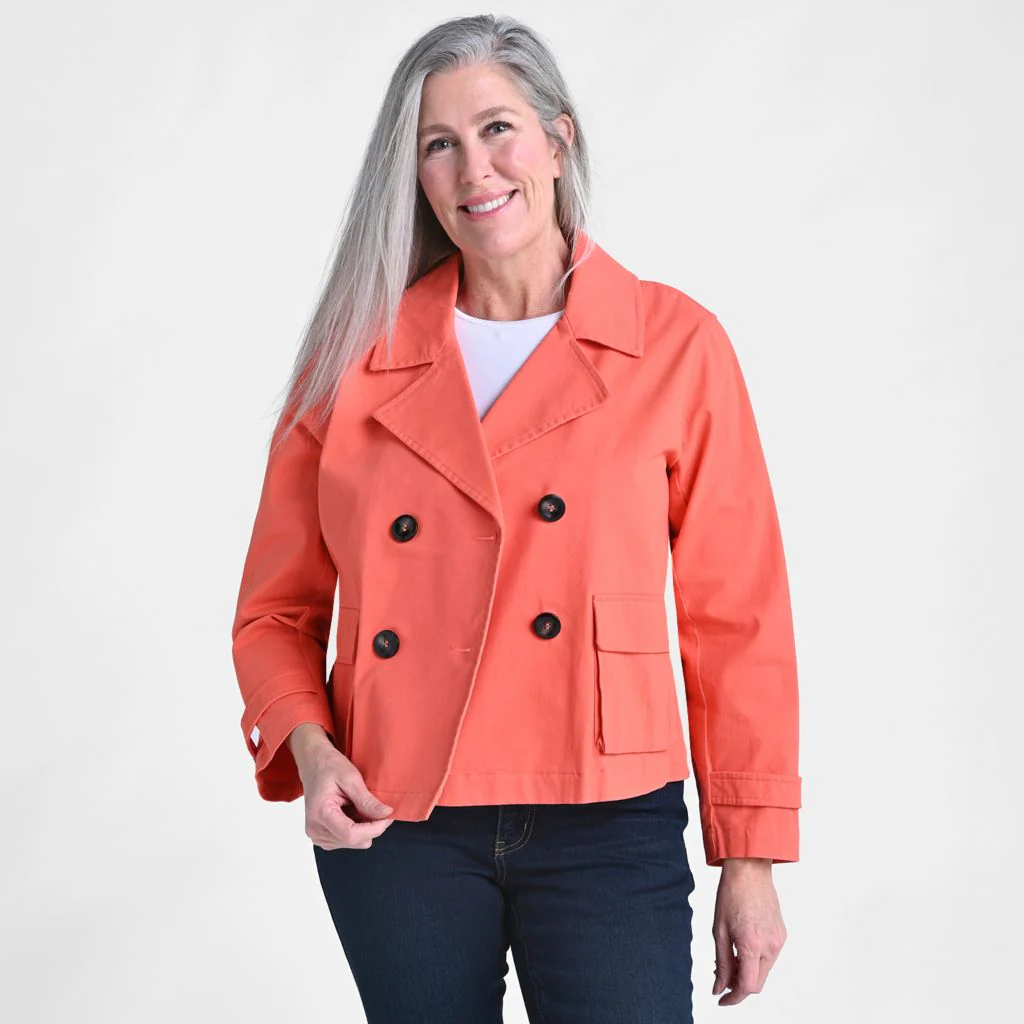 Our cropped trench jacket is the perfect blend of classic style and modern versatility, crafted from soft brushed twill for a luxurious feel. Available in three timeless colors, it’s the lightweight, seasonless layer you’ll reach for indoors or outdoors, effortlessly elevating any outfit.