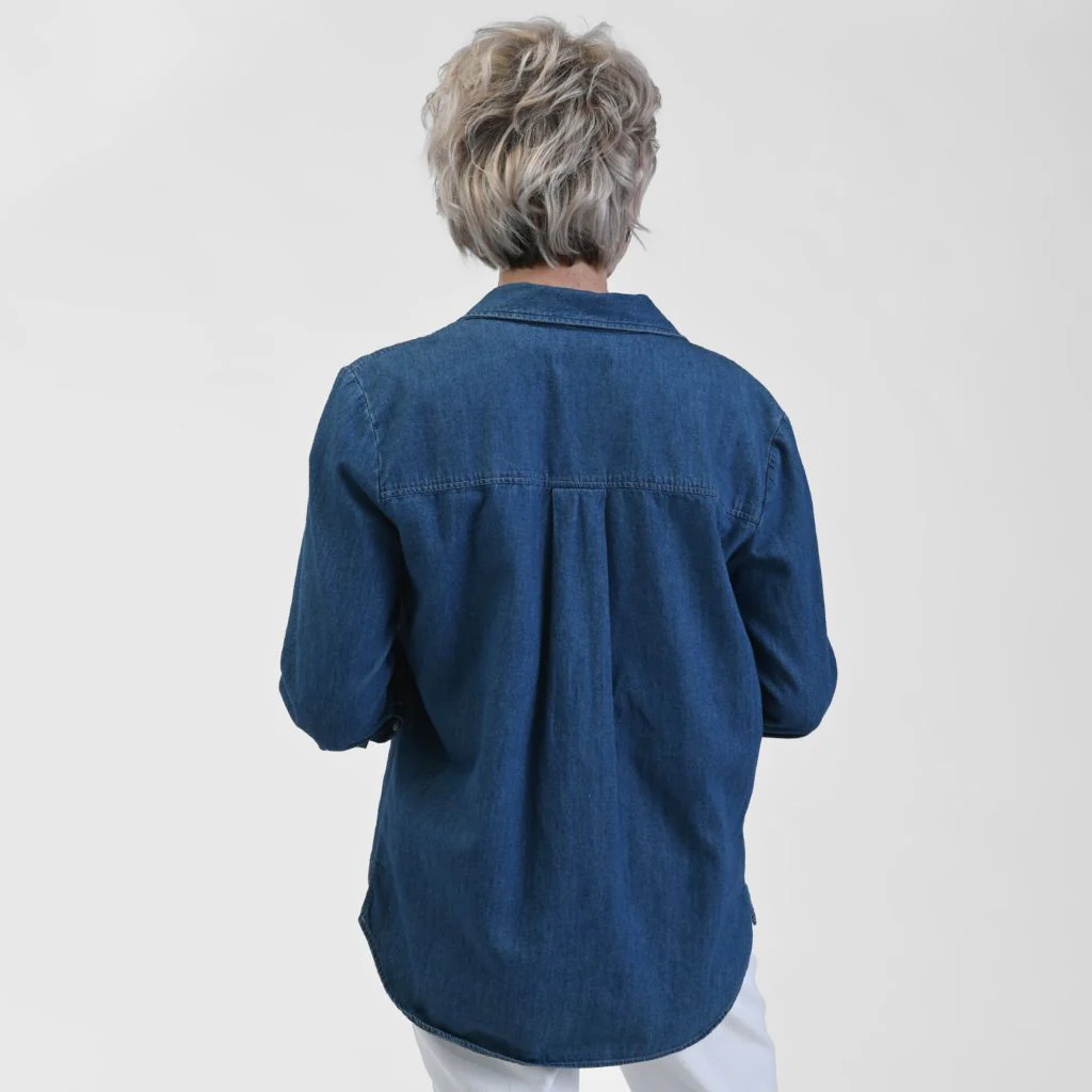Experience the timeless comfort of our 100% cotton soft hand chambray shirt, perfect for any occasion — wear it solo, layered under a sweater, or over a tank. Its versatile “medium wash” color seamlessly transitions through every season, ensuring effortless style year-round.